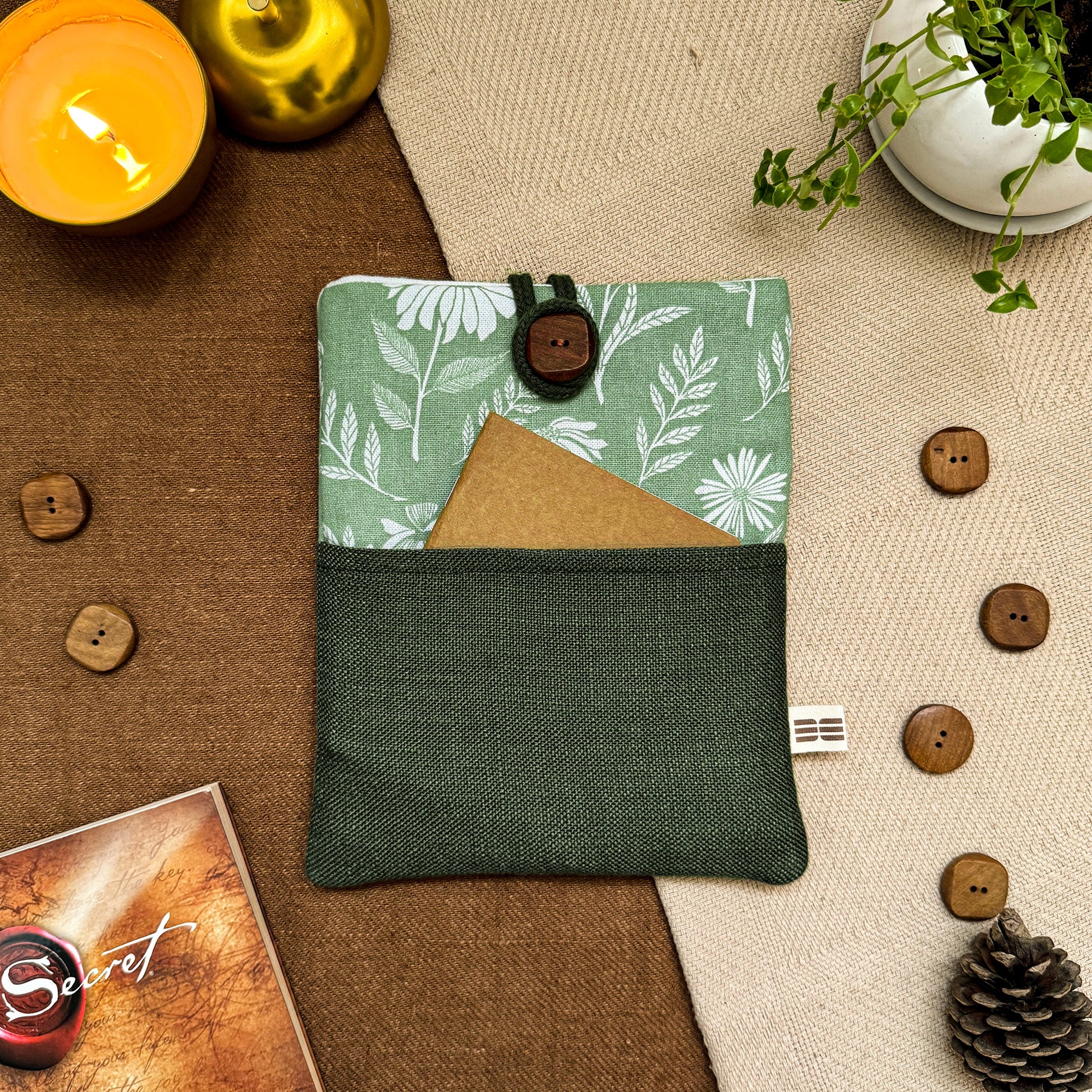 Keep your books safe and stylish with our handcrafted, lightly padded book sleeves. Designed to protect from wear and tear, they offer extra cushioning while adding charm. The front pocket has plenty of space for your bookmarks, notes, or small essentials. A simple button and cotton cord closure securely fasten the sleeve. With washable fabric and a lightweight design, it’s easy to carry and maintain. Each sleeve is a cozy home for your novels, notebooks, or sketchbooks.