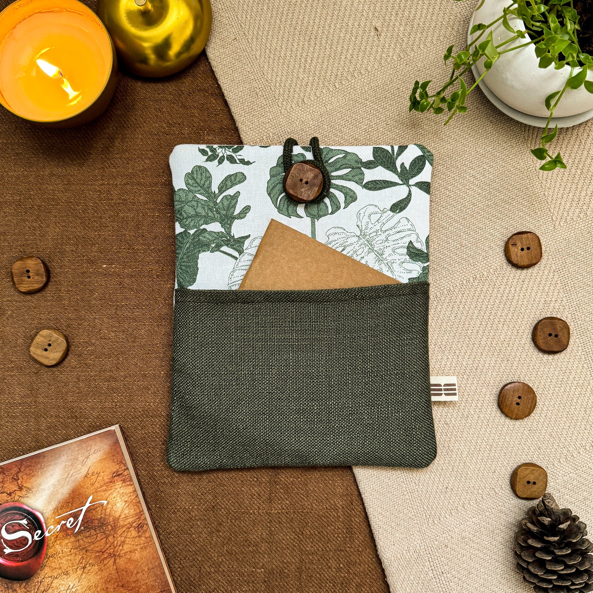 Keep your books safe and stylish with our handcrafted, lightly padded book sleeves. Designed to protect from wear and tear, they offer extra cushioning while adding charm. The front pocket has plenty of space for your bookmarks, notes, or small essentials. A simple button and cotton cord closure securely fasten the sleeve. With washable fabric and a lightweight design, it’s easy to carry and maintain. Each sleeve is a cozy home for your novels, notebooks, or sketchbooks.