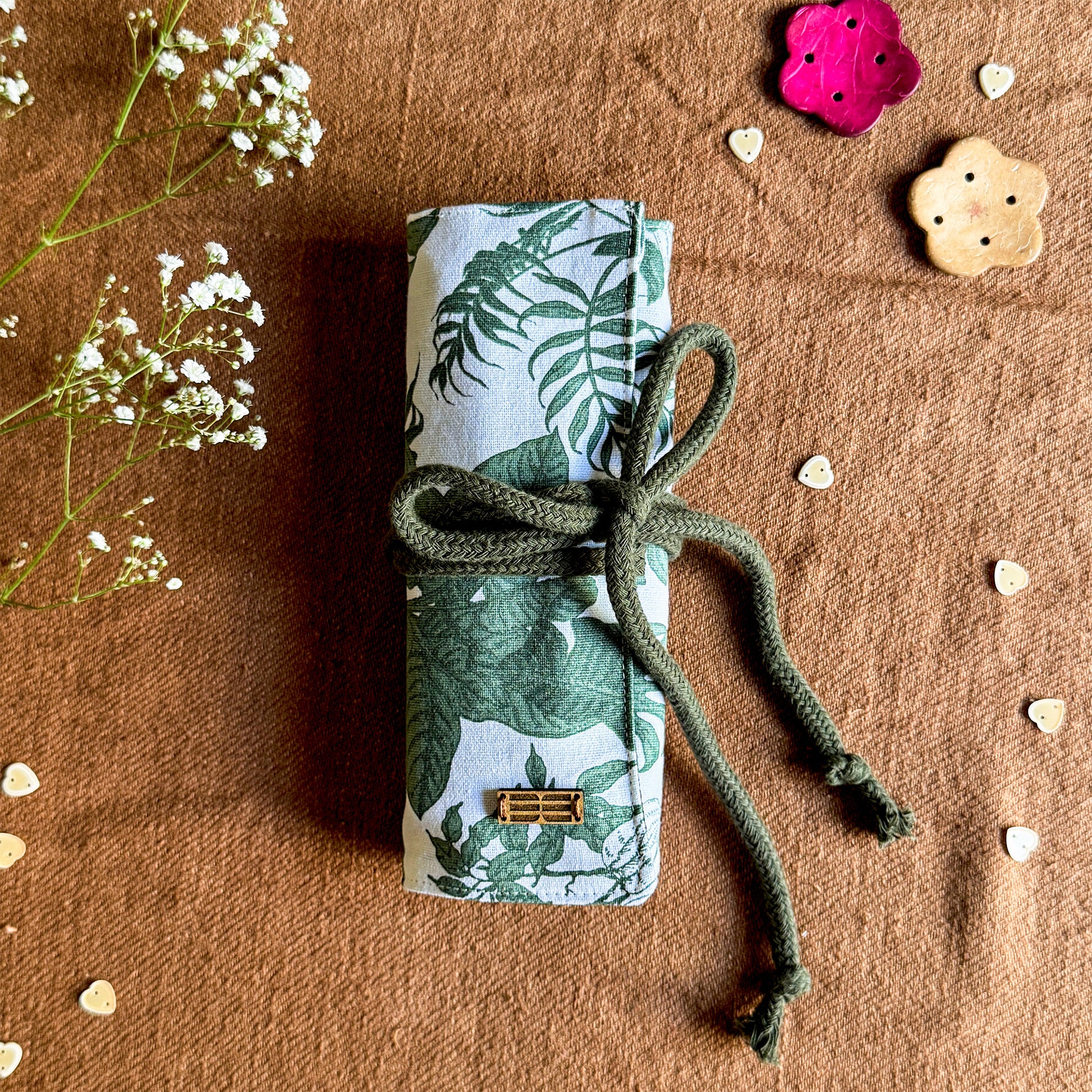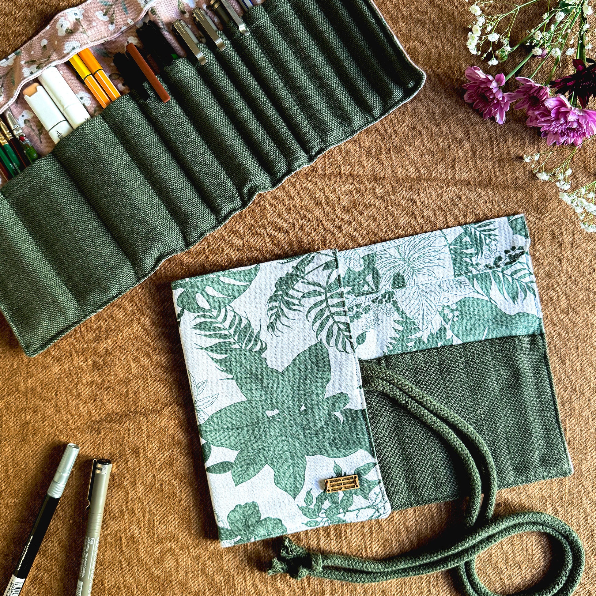 Keep all your stationery essentials beautifully organized with our handmade Stationery Roll. Designed with 14 pockets in three different sizes, it comfortably holds pens, pencils, brushes, markers, and other small tools neatly in one place. Thoughtfully crafted for everyday use, it’s ideal for artists, students, journal lovers, and anyone who enjoys staying organized with a touch of handmade charm.