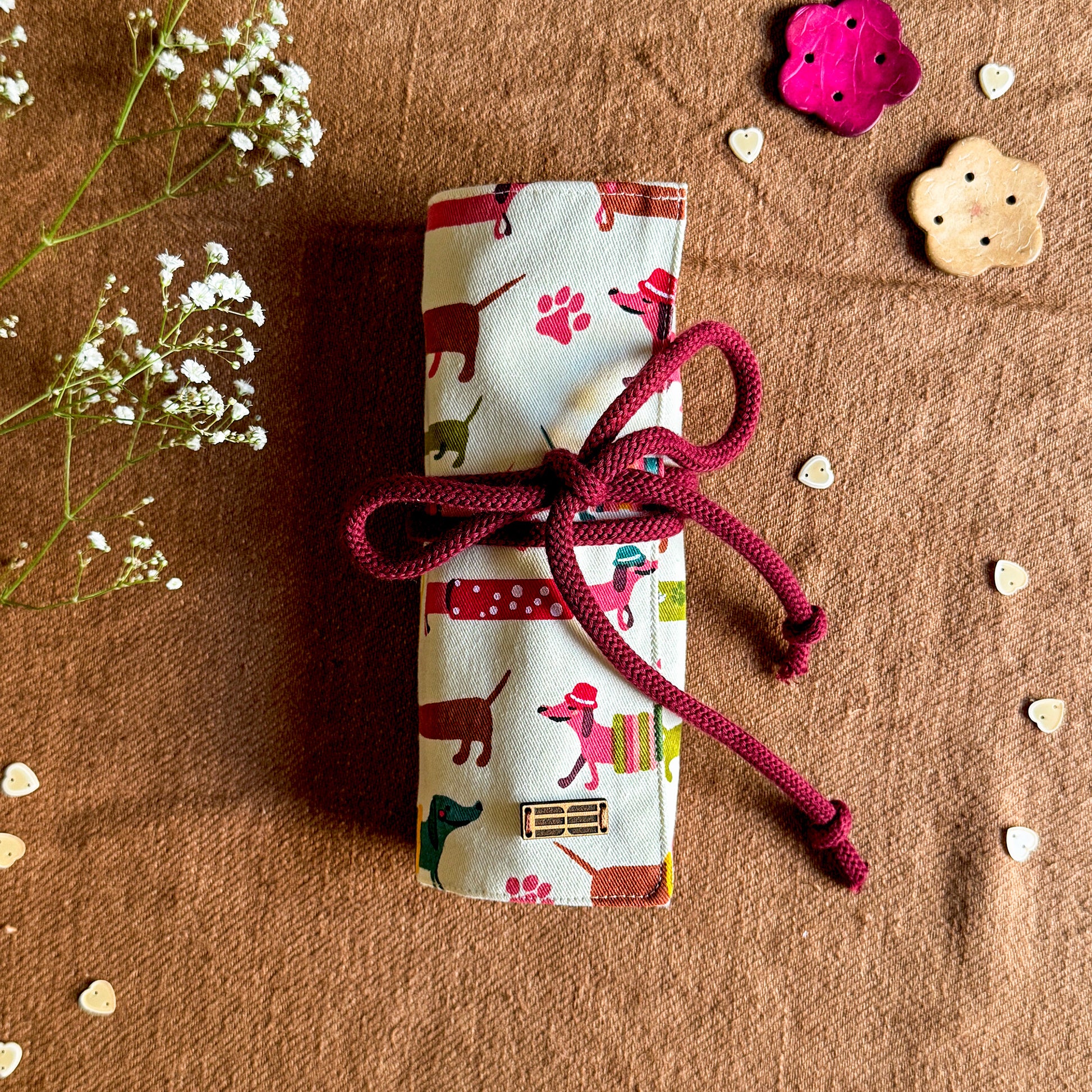 Keep all your stationery essentials beautifully organized with our handmade Stationery Roll. Designed with 14 pockets in three different sizes, it comfortably holds pens, pencils, brushes, markers, and other small tools neatly in one place. Thoughtfully crafted for everyday use, it’s ideal for artists, students, journal lovers, and anyone who enjoys staying organized with a touch of handmade charm.